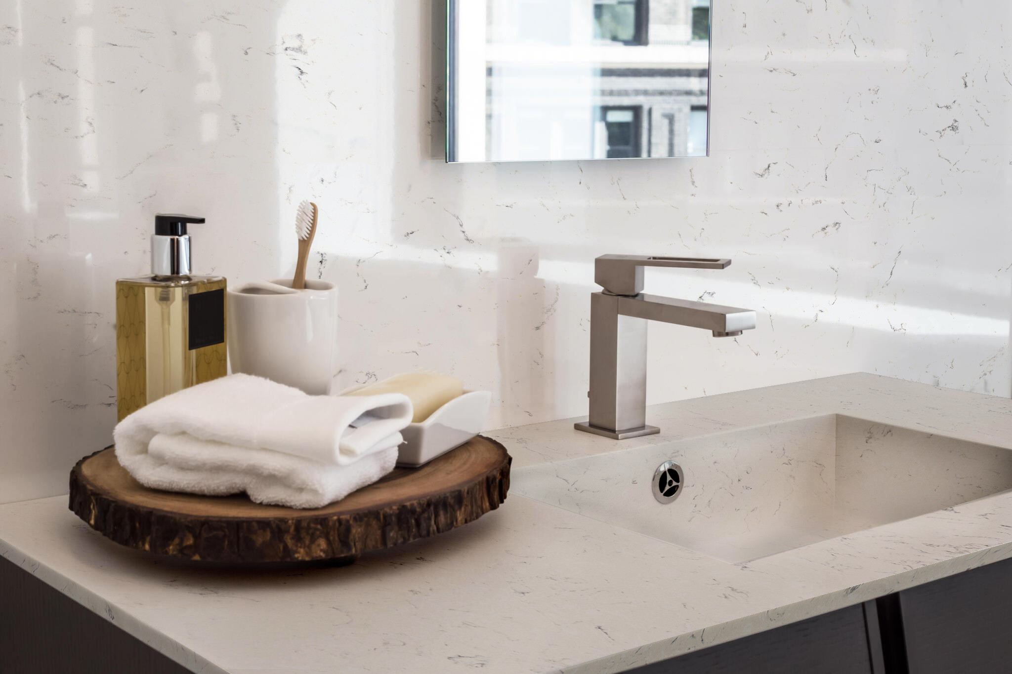 At Tessa Stones, we pride ourselves on being a premier natural and engineered stone supplier, offering a stunning selection of high-quality stone slabs. Our durable natural stone and quartz options are perfect for any home renovation, including elegant quartz countertops and kitchen countertops that add both style and functionality to your space. Among our exquisite offerings, Calacatta quartz stands out for its timeless beauty, making it an ideal choice for sophisticated bathroom vanities and complementing any cabinet design.