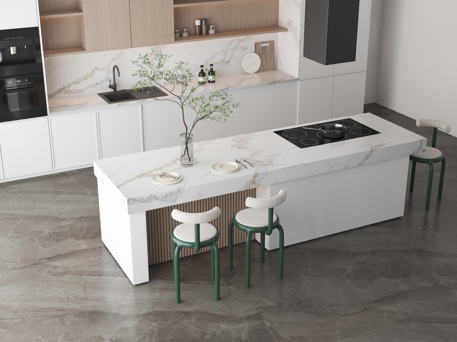 Embark on a journey of timeless sophistication with Calacatta Gale,an exquisite quartz masterpiece. This stunning slab introduces a pristine white canvas brought to life by sweeping veins in shades of gold and gray, creating a dynamic and flowing pattern. The interplay of these elegant hues mirrors the graceful dance of nature, reminiscent of sunlit meadows and tranquil streams. Calacatta Gale effortlessly weaves opulence and serenity into your space, inviting you to experience a harmonious blend of captivating aesthetics and the soothing essence of the outdoors.