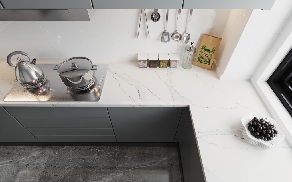 Calacatta Vogue is a stunning quartz stone that epitomizes luxury and sophistication. Featuring a pristine white background, this elegant surface is distinguished by its bold, thick light grey veins, which create a striking contrast against the luminous backdrop. Each vein is meticulously edged with a touch of gold, adding a refined, opulent flair that catches the eye and enhances the stone’s overall grandeur. The interplay of white, grey, and gold gives it a timeless yet contemporary appeal, making it the perfect choice for those seeking to elevate their interiors with a blend of classic elegance and modern sophistication. Ideal for countertops, backsplashes, and statement pieces, Calacatta Vogue brings a sense of luxury and style to any space. It showcases a luxurious white background with bold, light grey veins elegantly edged in gold. This striking contrast combines timeless sophistication with a modern touch, making it a perfect choice for high-end countertops and statement pieces.